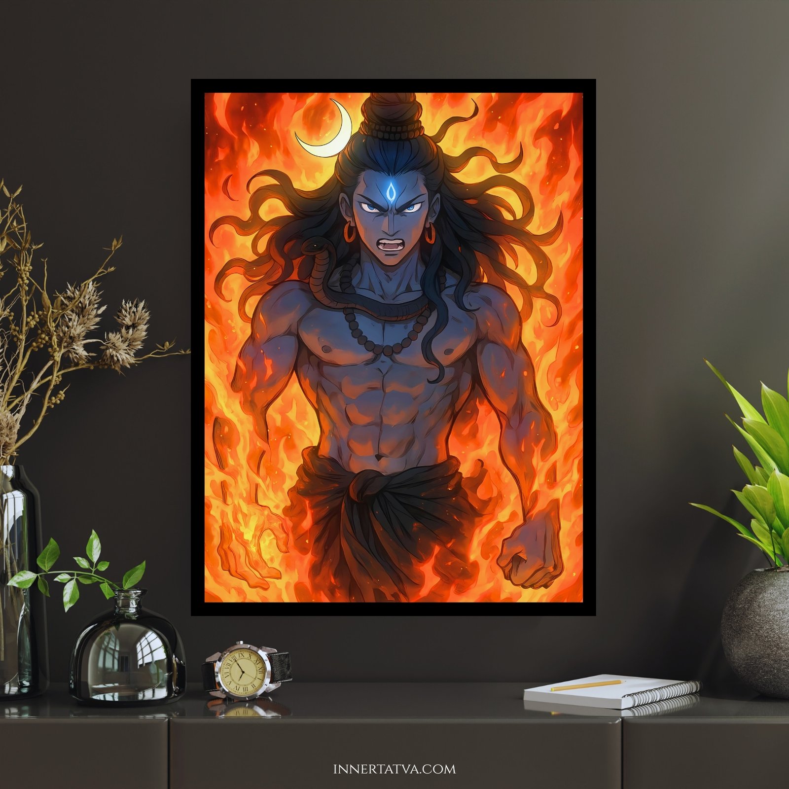 • High-Quality Anime Artwork – Lord Shiva in his intense, powerful form radiating fierce energy, reimagined in a modern anime style.