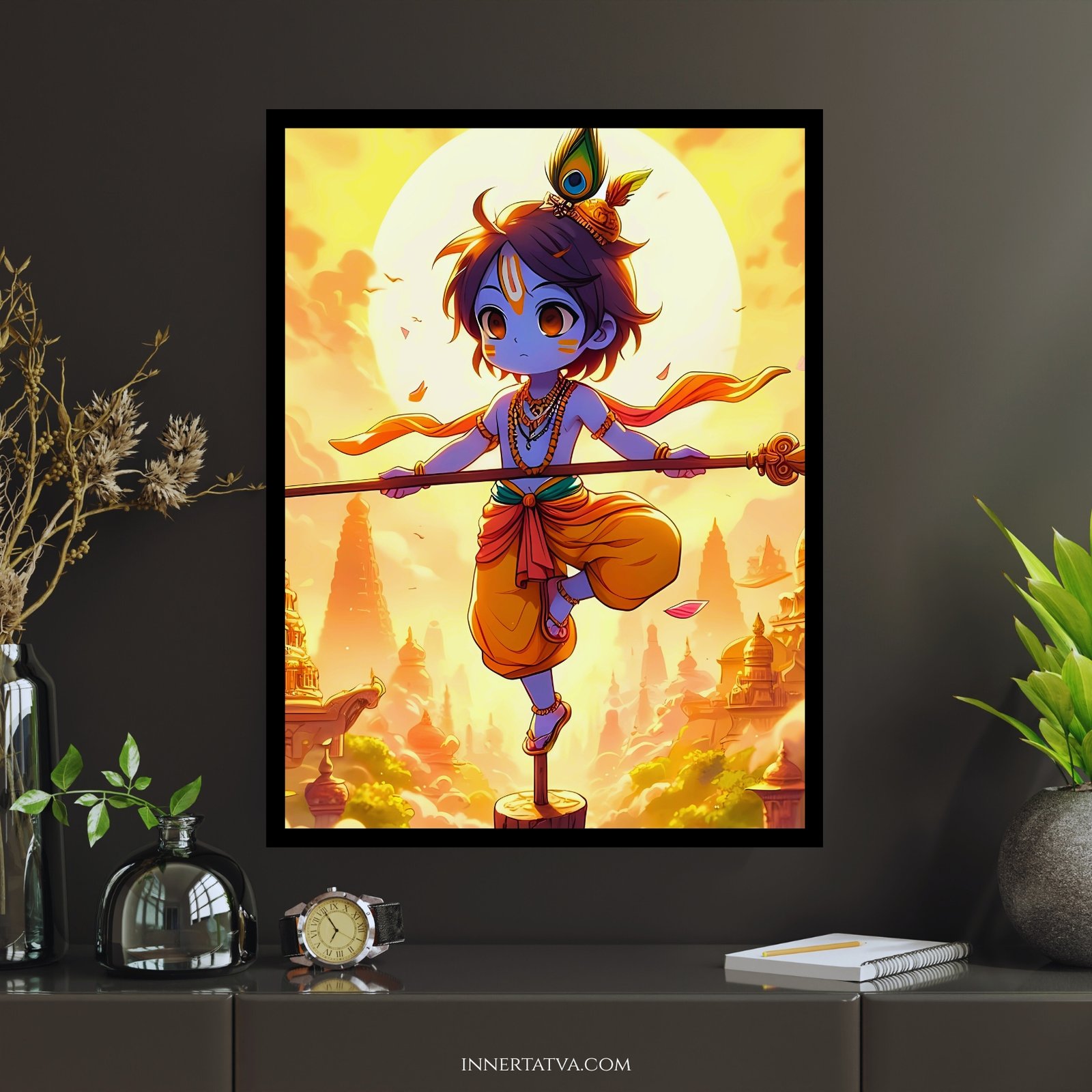 - High-Quality Anime Artwork – Adorable yet powerful depiction of Krishna, full of divine innocence and courage, crafted in striking anime detail.
