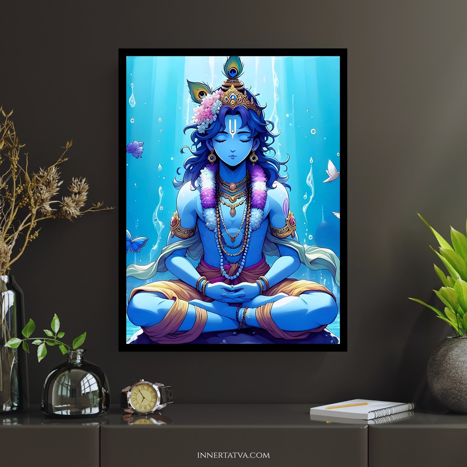 - High-Quality Anime Artwork – Krishna in a serene meditative pose, reimagined in an artistic, youthful style.