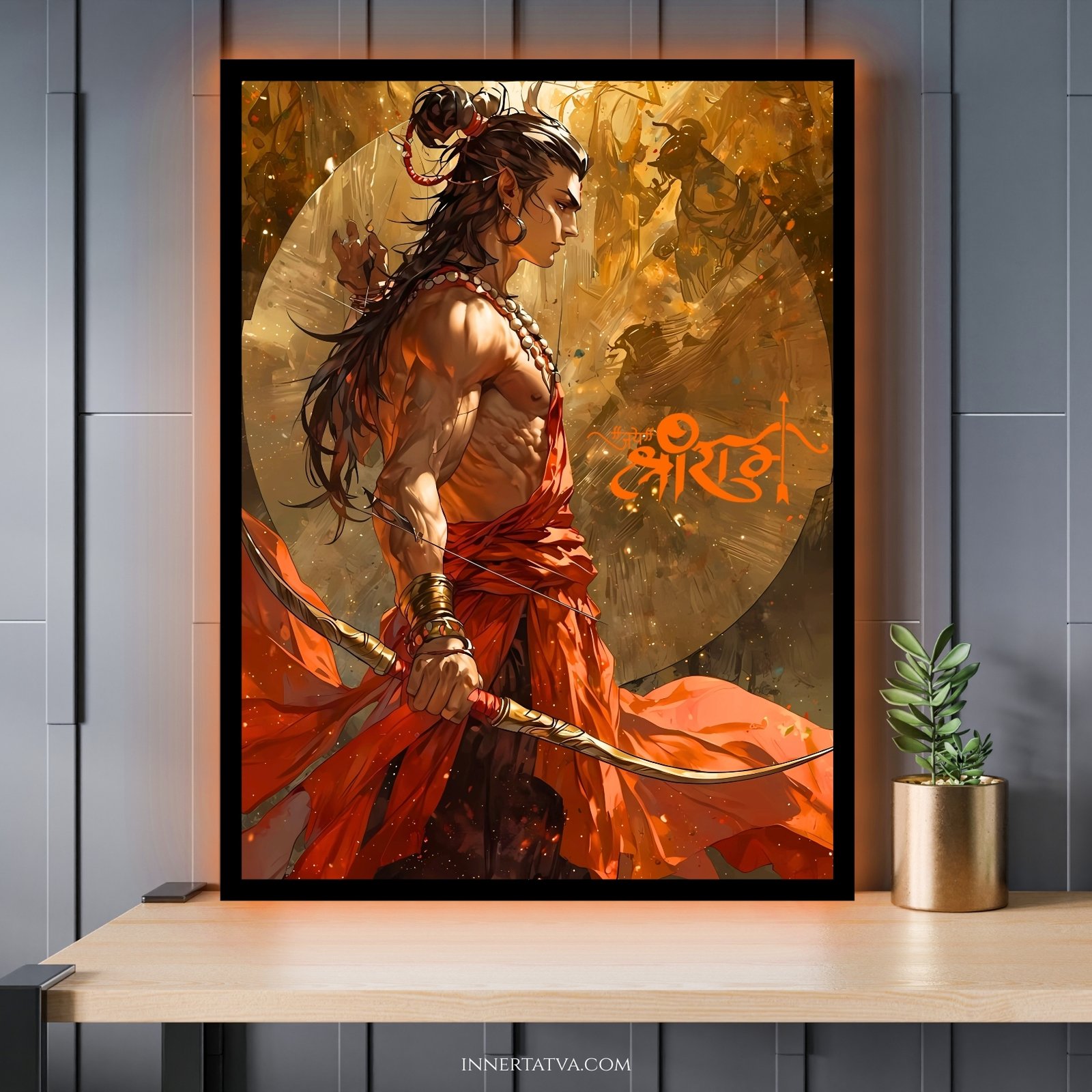✨ Lord Ram: The Unparalleled Warrior Anime Art – Acrylic Slim LED Glow Frame ✨