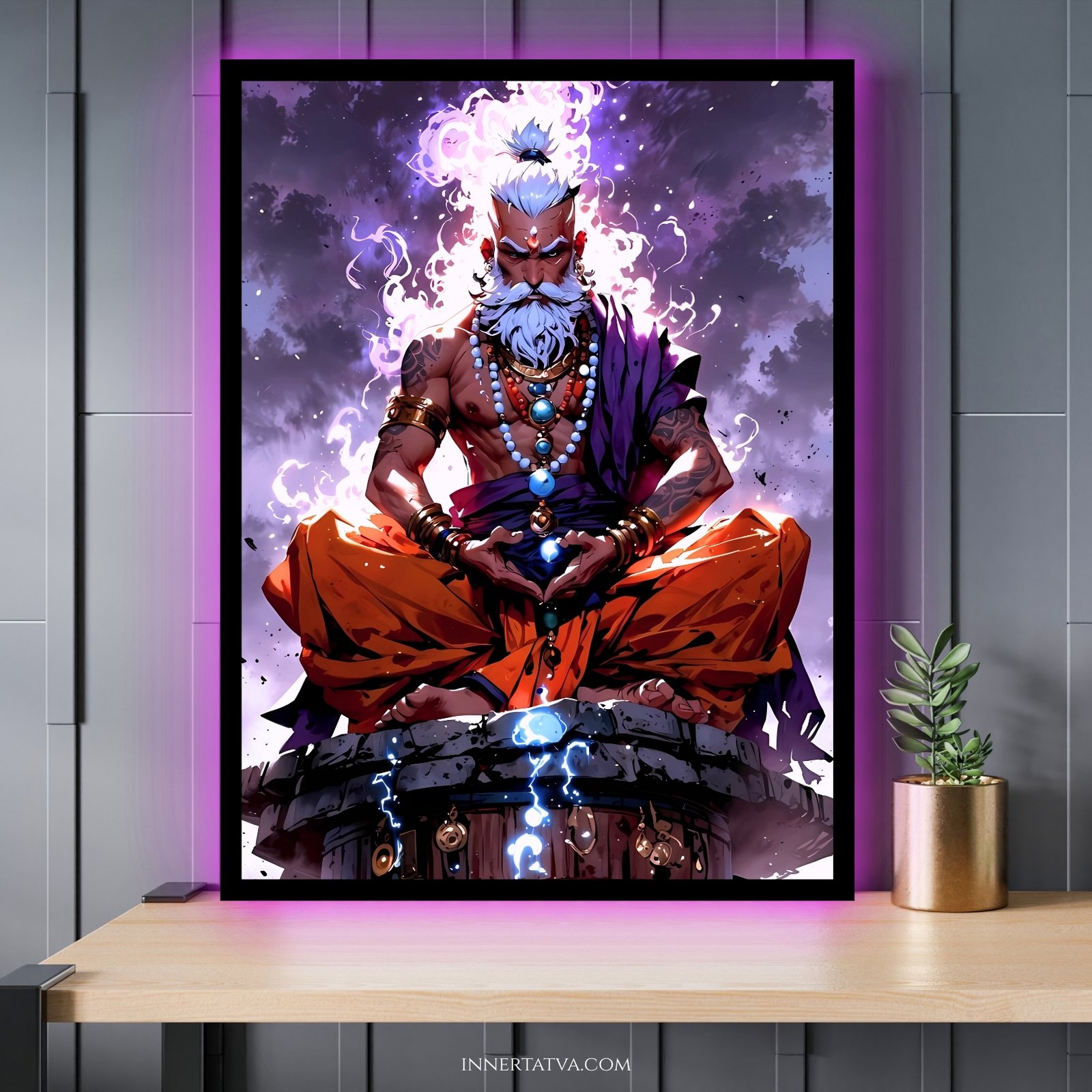 ✨ Ved Vyasa Chanting Anime Art – Acrylic Slim LED Glow Frame ✨
