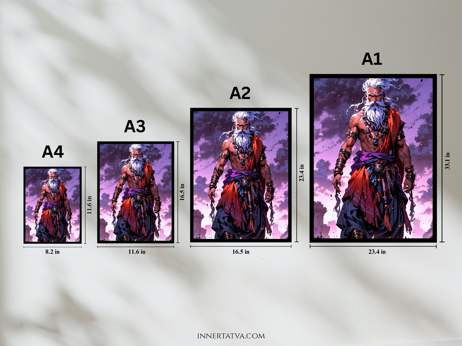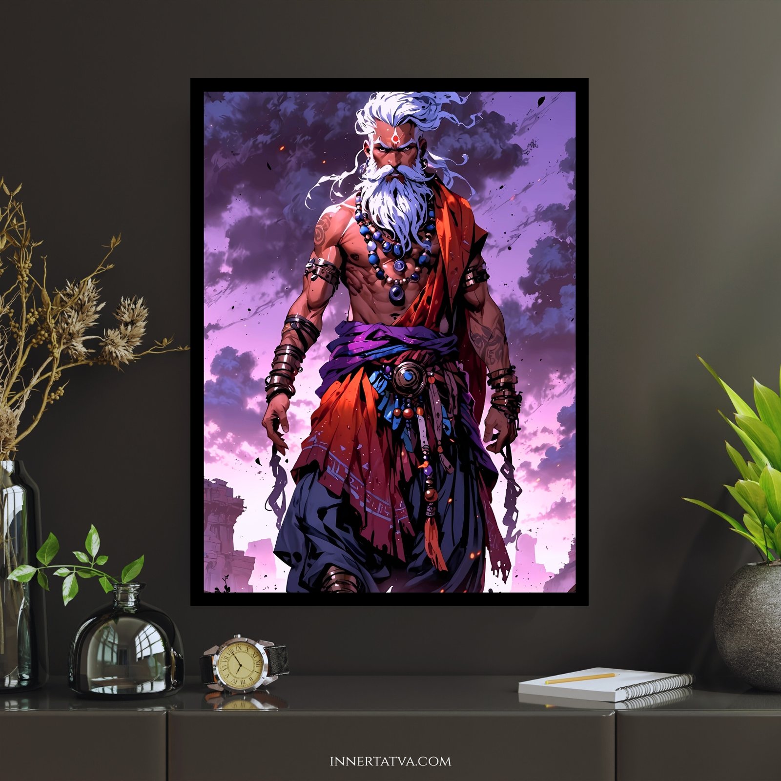 • High-Quality Anime Artwork – Striking anime-inspired portrayal of Ved Vyasa with a muscular divine form, flowing beard, and dramatic sky backdrop.